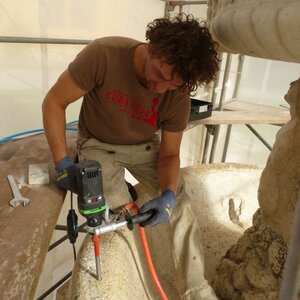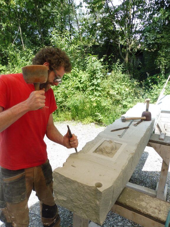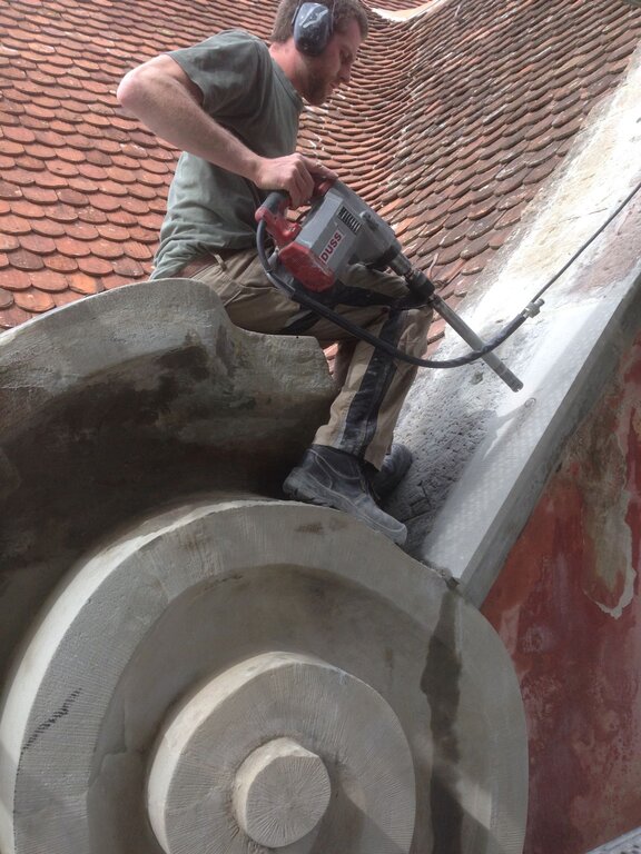 Lenbachhaus München, Restaurierung Epitaph Jura Kalkstein-nachher.