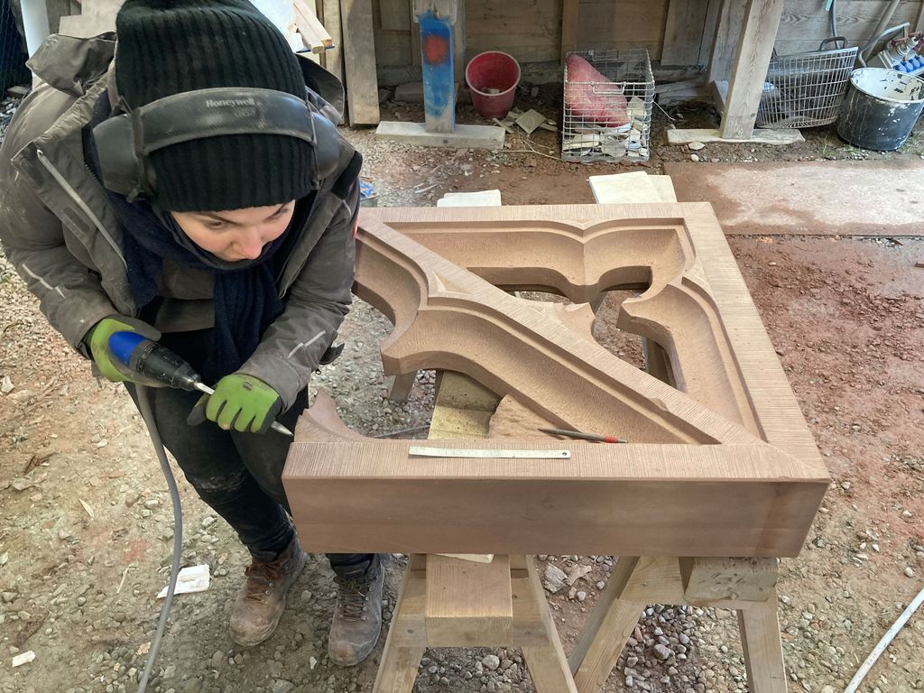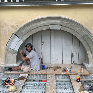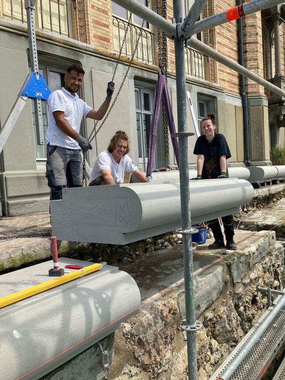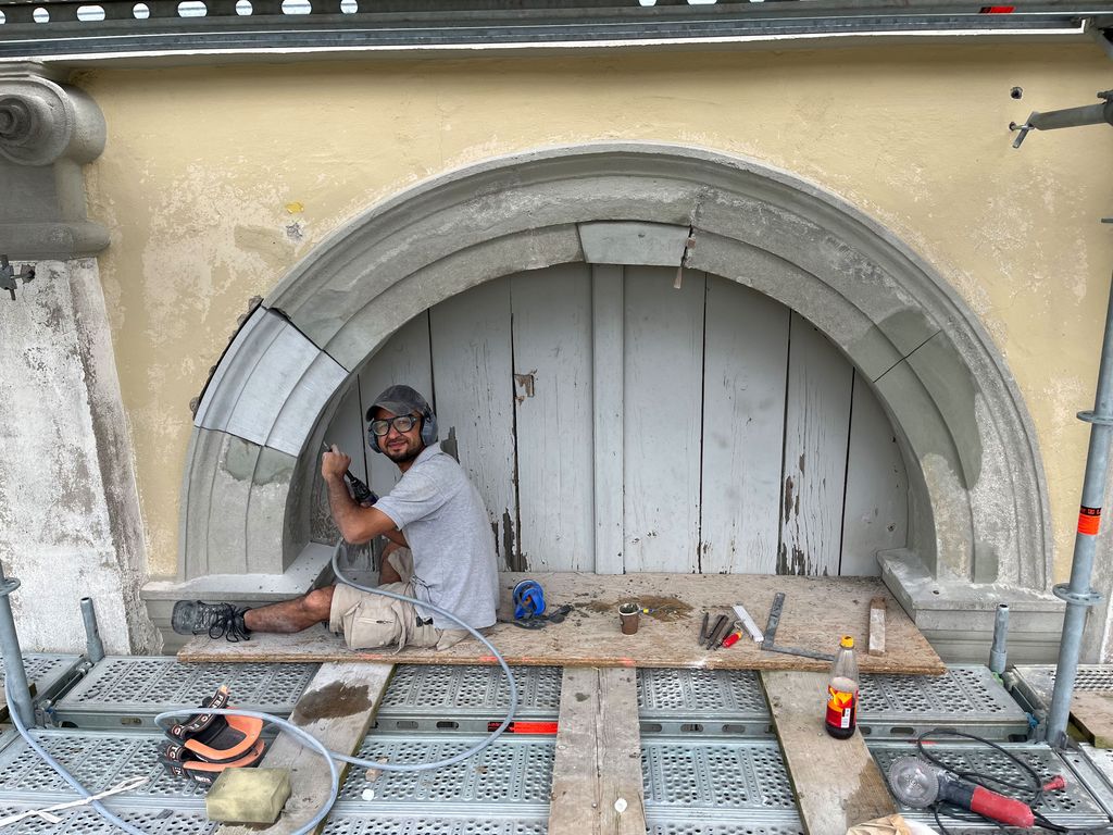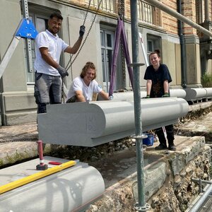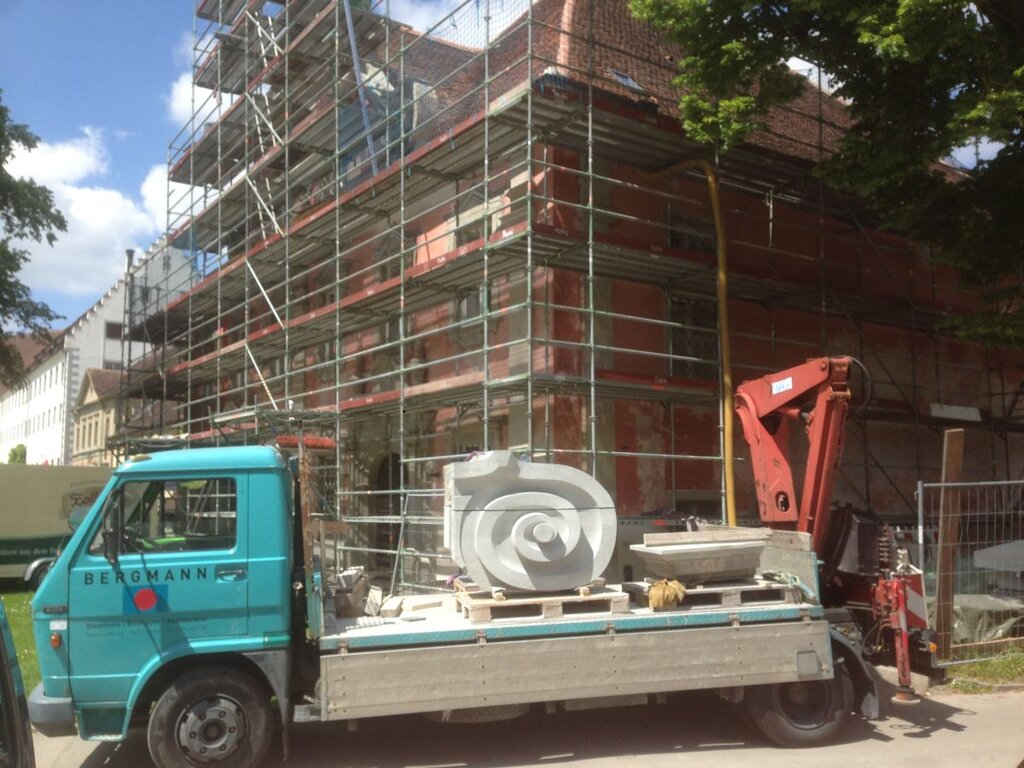 Schloß Salem, Marstallgebäude. Restaurierung der Aussenfassade. Neuteil aus Rorschacher Sandstein.