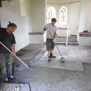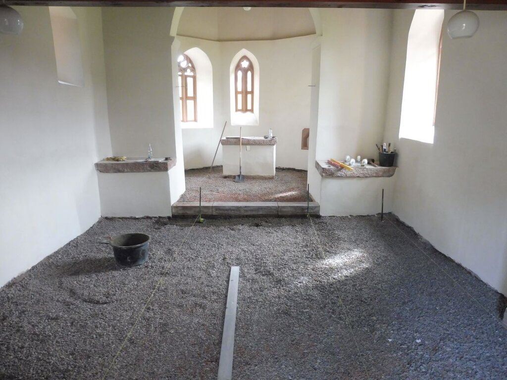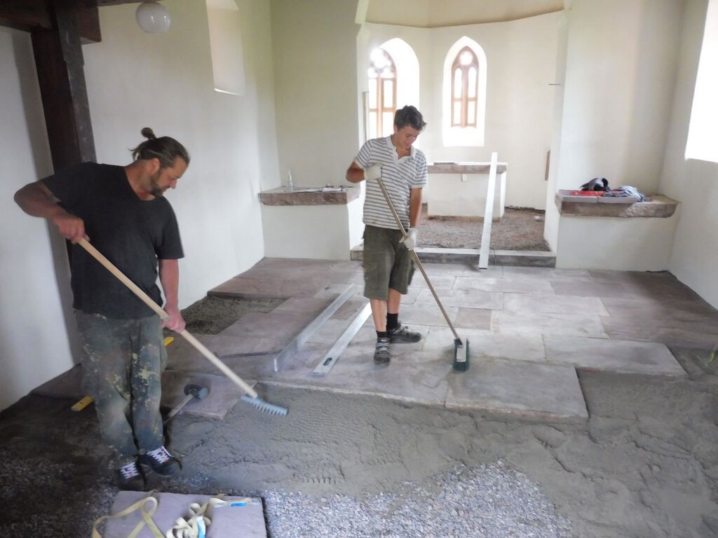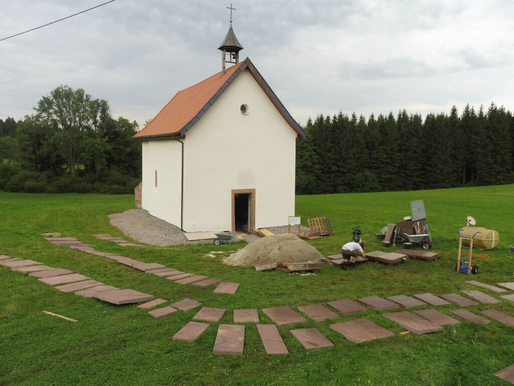 Rossbergkapelle Kaltbrunn. Restaurierung Sandsteinboden.