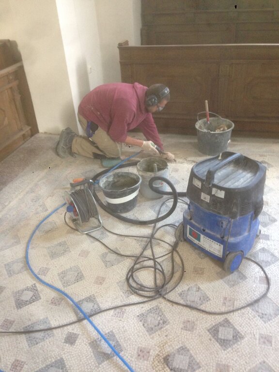 Friedhofskapelle Immenstadt, restaurierung Mosaikfußboden