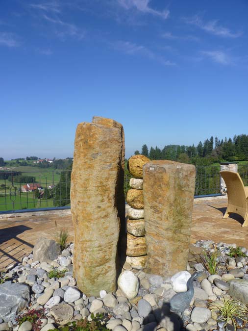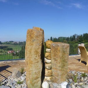 Brunnen aus Basaltsteelen und Findlingen, privat.