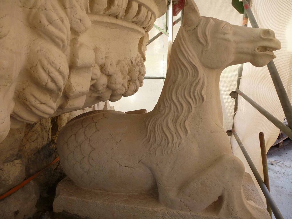 Lenbachhaus München, Restaurierung Hippokampenbrunnen, vorher.