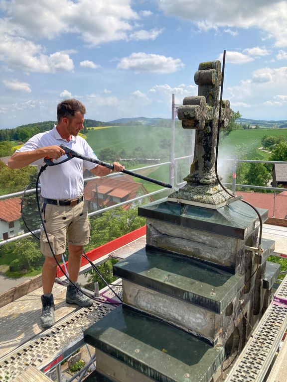 Evang. Kirche St. Stephan Lindau. Reinigung der Fassade.